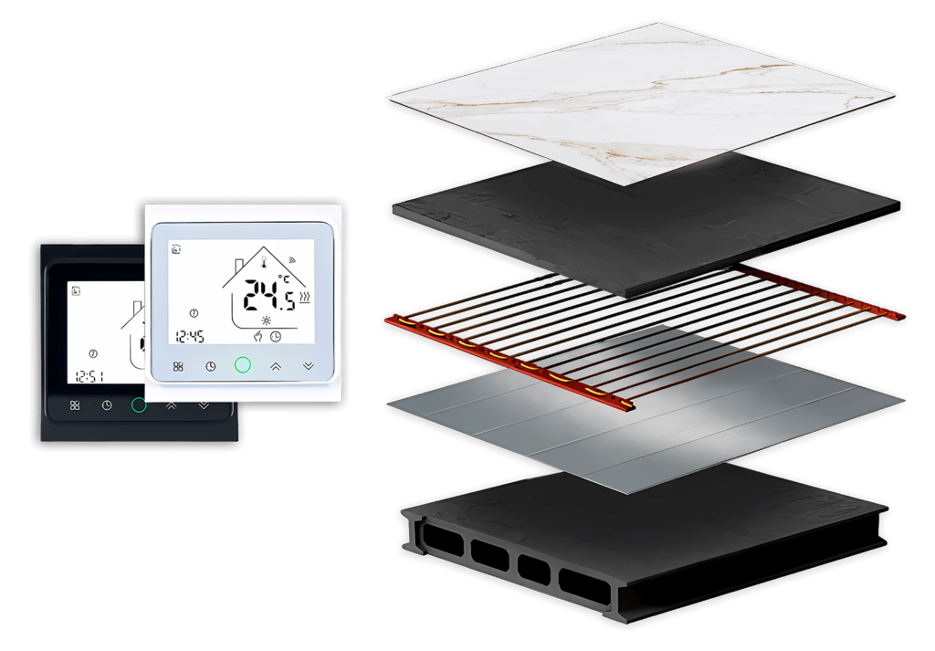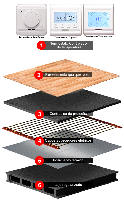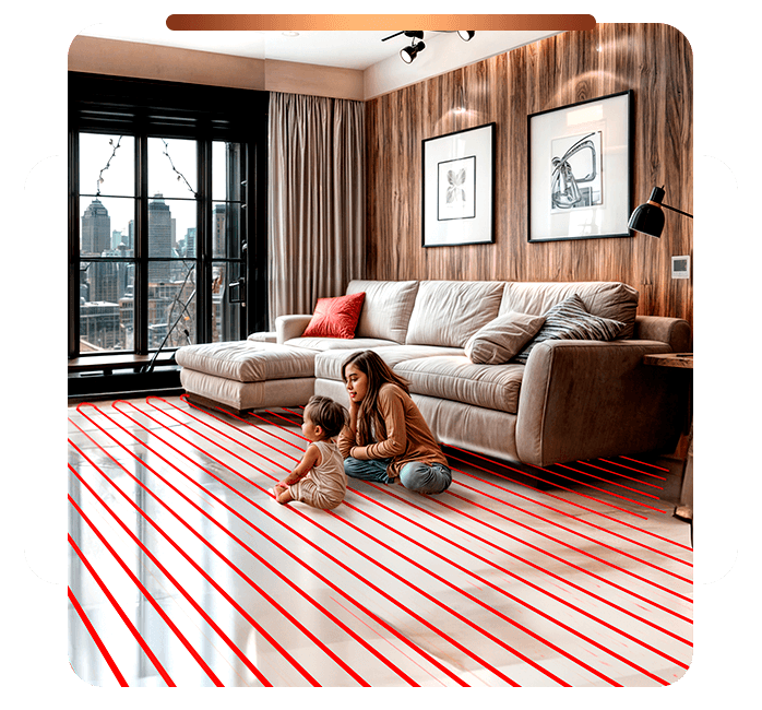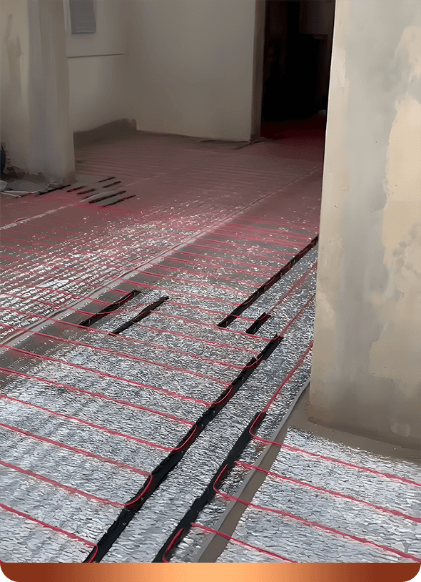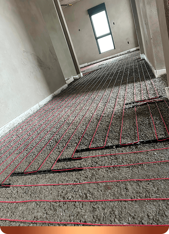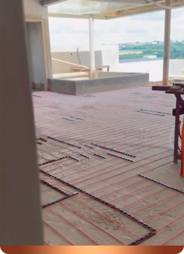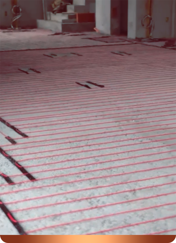 É um sistema de aquecimento moderno e eficiente, composto por cabos calefatores instalados sob o contrapiso. Esses cabos transmitem calor de forma uniforme e silenciosa, aquecendo o ambiente de baixo para cima — diretamente através do piso.